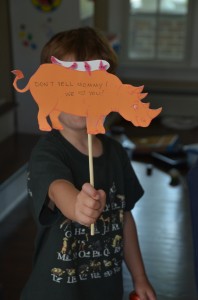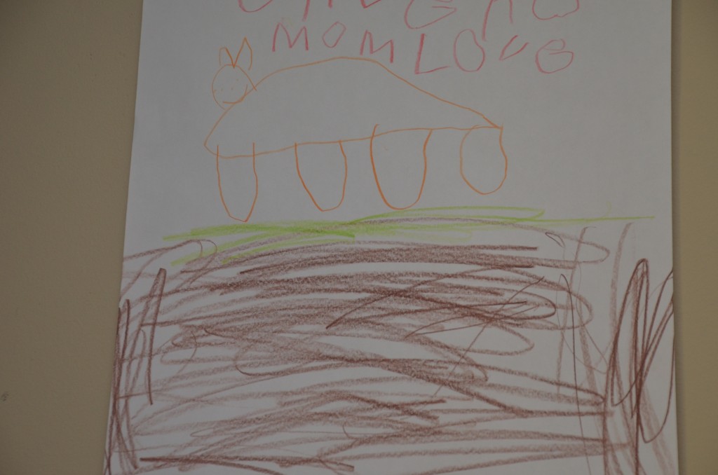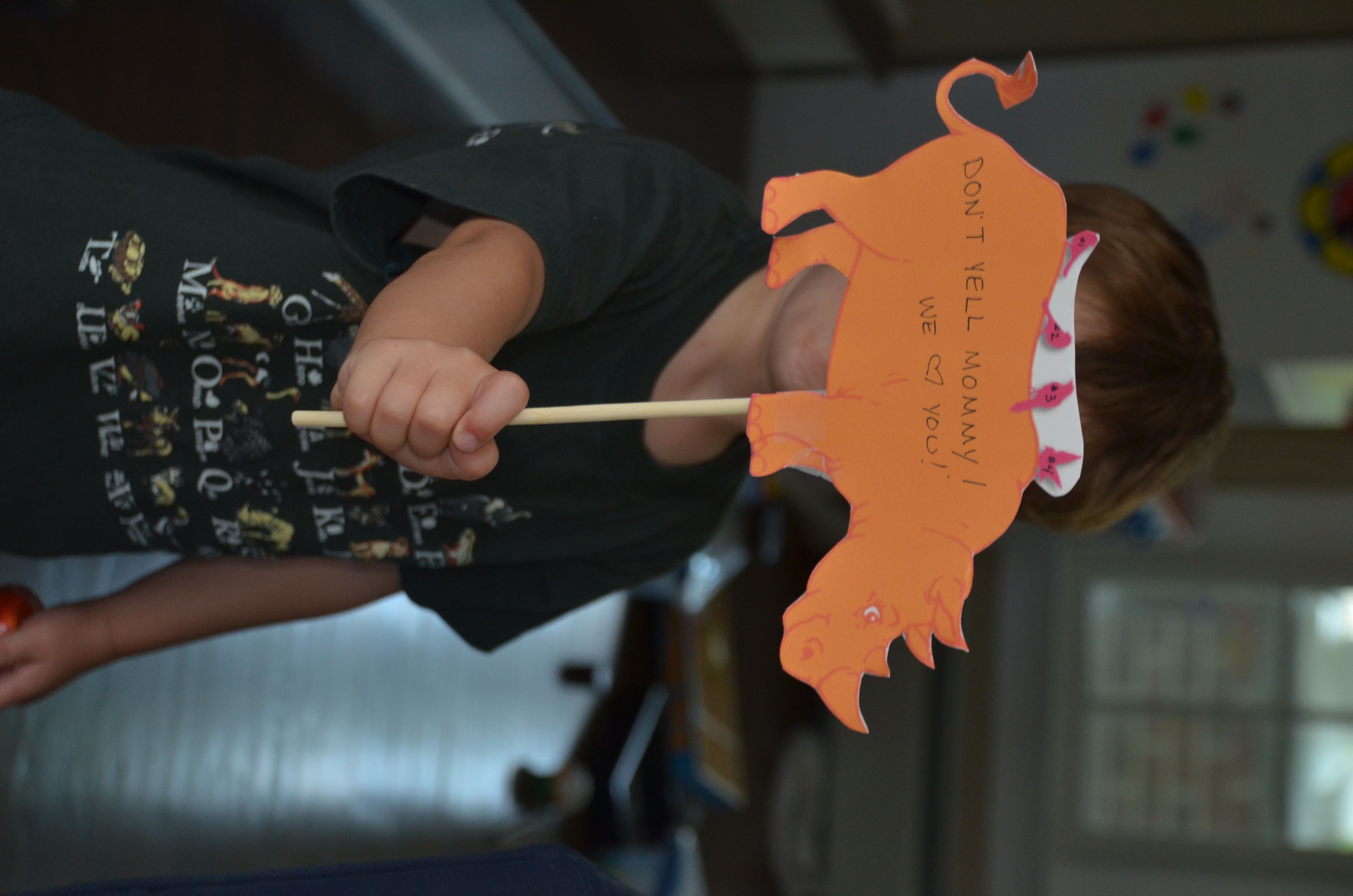 My 4 years old’s own Orange Rhino sign (he traced the one I made for him to hold up when I got cranky). See below.