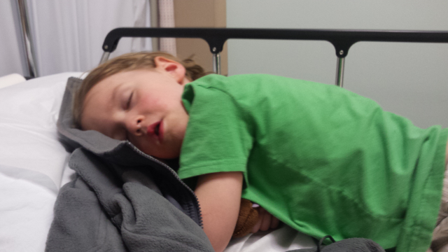I knew the drill – the Hematologist had told us to immediately get blood work if Mac got sick again. The bad news is that Mac was really hit hard this time. As soon as he spiked (it happens out of no where it seems) he was lethargic and out. He couldn’t stay awake and even collapsed onto the floor of the hospital waiting room during registration. In fact, he was so out of it that during his blood work, he slept. The poor thing.