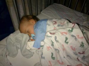 As little man hadn’t eaten all day and couldn’t keep anything down we hooked him up to IV fluids. My sweet boy fell asleep in my arms immediately; only to toss and turn and be up ALL night as every time he moved he set off the IV machine alarm.