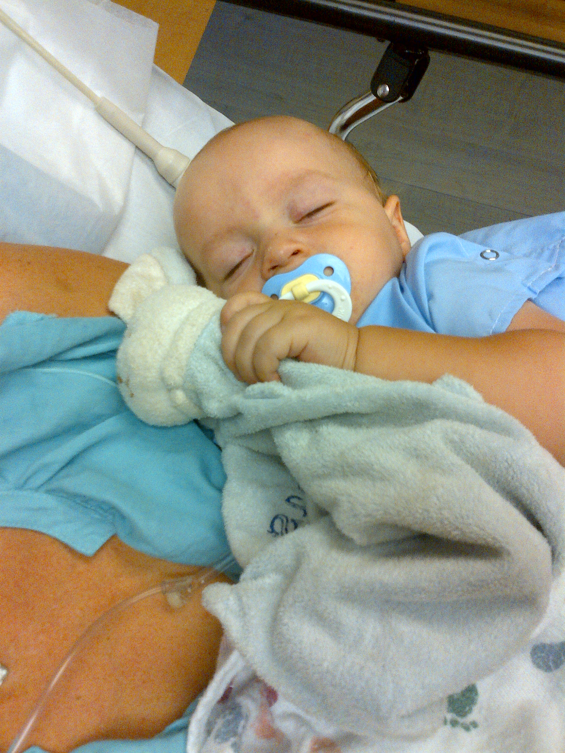 Take a deep breath and just rest. RIGHT. As If I could. I couldn’t exhale for the life of me. I waited and waited to calm down but my heart was still racing, my palms still sweating¸ and tears were still occasionally dripping down my face. But #4 understood the Dr’s orders. He passed right out on me, cuddled in a receiving blanket identical to those from the maternity ward. And I had a wave of emotion pass over me identical to the day he was born and he fell asleep in my arms for the first time…